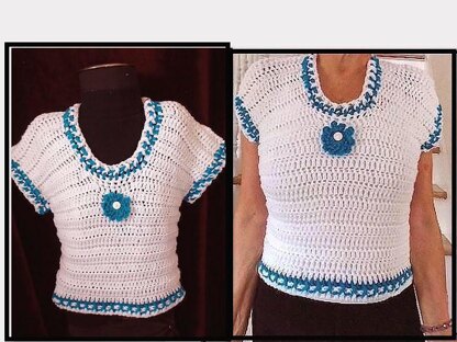 CROCHET SWEATER PATTERN, Summer Shell with scoop neck, child, teen, adult, plus size - women's clothing, sleeveless t-shirt, #805