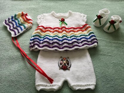 Instructions for a cute girl's angel top, short, bonnet and T bar shoes.