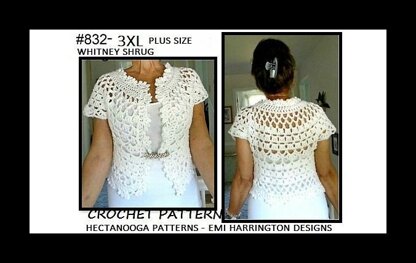 Crochet PATTERN 832-3XL (54 - 62 inch chest) - Whitney Shrug Bolero, White Wedding Shrug, women plus size clothing, sweater vest tops, . FOR ALL OTHER SIZES OF THIS SHRUG click here: http://www.ravelry.com/patterns/library/832-whitney-shrug... . ALL MY SHRUG PATTERNS ON RAVELRY: http://www.ravelry.com/patterns/search#sort=best&quer... HARRINGTON%2C SHRUG . CLICK HERE TO ENTER MY RAVELRY PATTERN SHOP: http://www.ravelry.com/designers/emi-harrington .
