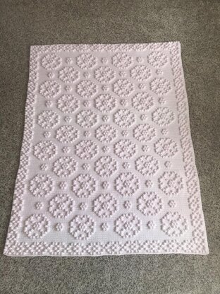 This blanket was made with Caron One Pound & G hook. Finished size is 47 x 61. Yarn choice, hook size and tension may alter finished size.