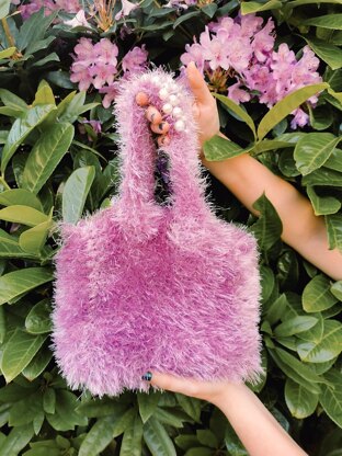 The design works up quickly on 5mm needles with jazzy novelty yarn and is made up of simple flat rectangles that are sewn together. Optional pearl beads on the handles give a millennial it-bag twist.