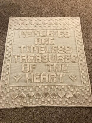 Pattern reads: MEMORIES ARE TIMELESS TREASURES OF THE HEART