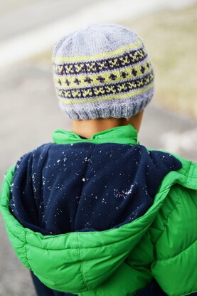 This simple colourwork hat starts at the brim with a 2x2 ribbing followed by a band of colourwork pattern based on cubes. The crown shaping is a beautiful spiral that allows for a perfect fit on the wearer. Choose a main colour and a couple of minis in 2 contrast colours and you are good to go. The hat will fit like a slouchy for baby and child sizes and a beanie for adult sizes.