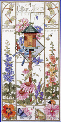 By Nancy Rossi. This delicate and beautiful greenhouse style design by Nancy Rossi brings the outside вЂin’ with lovely depictions of Roses, Clematis, Delphinium, Hollyhocks and more. Birds, frogs and insects flit and flutter about the classic and elegant birdhouse which is the focal point of this design.\n