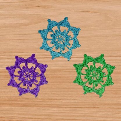 - Materials: Rico essential crochet yarn Hook no. 1.6 mm Tapestry needle Scissors Measurements: The round of the coaster: 9 cm