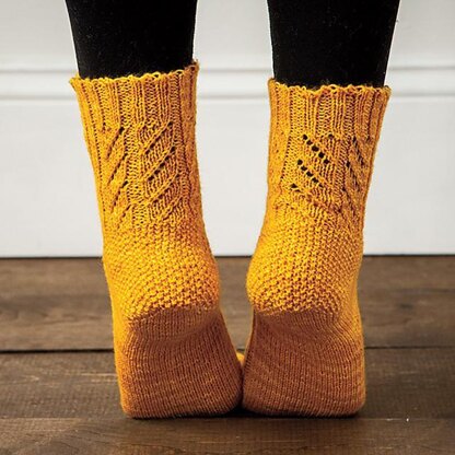 Embodying the contradictions of that continent-spanning empire of the Ancient world, the motifs of this sock evoke both the quotidian realities of its bucolic ideals and awe-inspiring grandeur of its most impressive architectural achievements. With waving wheat lace and spiraling cable columns, the roots of the Western collective imagination will never be far from your day dreams.