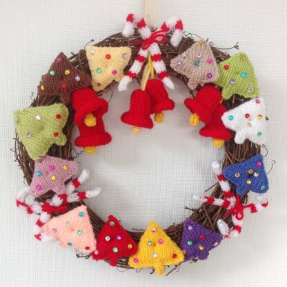 The pattern has instructions for knitting the Christmas Trees, Candy Sticks and Bells and how to wire them for the arrangement.