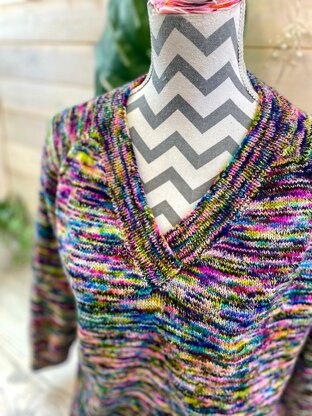 A 4ply top down V-neck sweater, with 3/4 sleeves, ideal for keeping you cosy whatever the weather. MATERIALS :- For The Love of Yarn, Glesga Zebra 4ply, merino/nylon 400m per 100g 1050(1100, 1150, 1250, 1300, 1375, 1450, 1550, 1650, 1750, 1850, 1950, 2050)m.