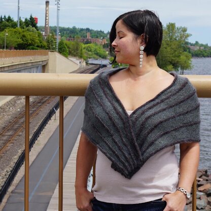 I had green yarn, and I had fuzzy yarn, and I thought they would be happy together. Luckily, I was right. This shawl is created by holding a fluffy and sparkly mohair with two wool and silk blend yarns. The result is begging to be cuddled with.