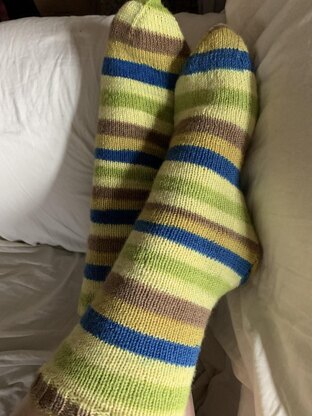 These socks came out of those trips and the lessons I learned. No picking up of stitches, no special stitches, and if you can read your knitting, no markers necessary. A tapestry needle will be needed at some point for weaving in of ends but is not needed to finish off the live stitches (dental threaders will work in a pinch).