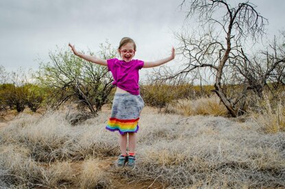 Pigtails and rainbows are the perfect pair! I love how this sweet skirt is a simple reminder that even at the end of the most grey of days, a rainbow awaits to sweep you away. This one is sure to put a smile on any little girl’s face and bring many days of jumping in muddy puddles!