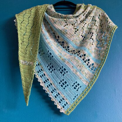 The A Traveller’s Dye-ry Shawl showcases the gorgeous speckles of hand-dyed yarn and uses geometric designs inspired by travel photographer Jenny Anderson’s photos. By primarily using the UK treble crochet (US double crochet), this shawl pattern is suitable for improving beginners. It uses filet crochet and simple openwork/lacework to create a textural record of Jenny's travels. Detailed written instructions in both UK and US terms and full charts are provided.