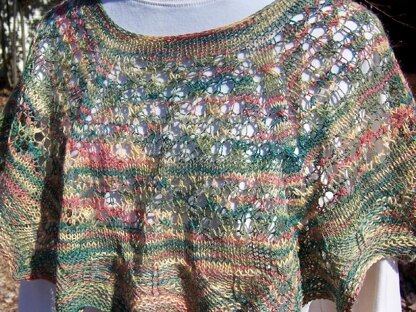 This poncho, which starts at the neck and works in the round to the fan edging, is a loving tribute to my life-long knitting mentor, Elizabeth Zimmermann.