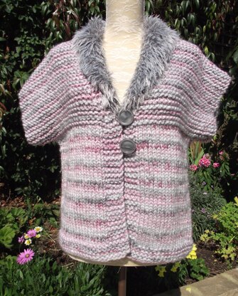 A cosy bolero, perfect for layering on cooler days or to keep warm and comfy indoors. Knitted in stocking stitch with a garter stitch yoke and lovely fur effect collar. No borders to stitch on either - just the collar to attach. The design would work well in any super chunky yarn which knits to a standard tension of 10 sts and 14 rows using a 10 mm needle. Two good King Cole yarn substitutions could be Timeless Classic Super Chunky or Quartz Super Chunky. You will notice that I used a size smaller needle for this design to give a closer textured knit.