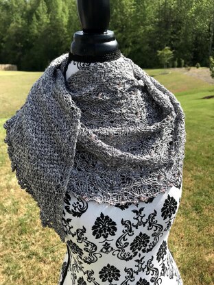 Aaku (pronounced ahh-koo) means "leaf" in the Telugu language. This lacy crescent shawl is worked top down with three sections, the two sides have texture, framing a lace section. Optional beading in the lace section and picot bind off. Video tutorial link is included to help with bead placement. Pattern has written and charts.