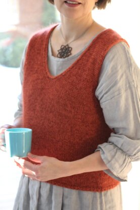 - The vest is knitted with two strands of yarn held together, one of each quality.