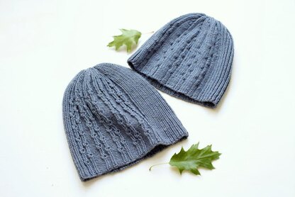 Aaron features an original stitch design that recalls the delightful summer rain coursing down a windowpane. To complement this fun-to-knit stitch pattern, the classic single rib is added to create textural contrast. The decorative backside suggests a cable pattern and makes Aaron reversible. This unisex hat is knitted in the round from the bottom up and comes in three sizes that can be worked to beanie or slouchy length.