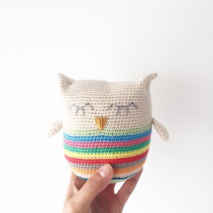 This owl is a great project for beginners but also fun for experienced crocheters as well. You can make this yarn with just scraps of yarn and one ball of a basic colour. You need at least two colours for the body and scraps of yarn for the beak and the eyes. This owl was made with a crochet hook size 3mm. The pattern is available for free. Happy crocheting!
