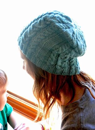 I just loved that center cable from the Abernathy sweater so much that I had to put it on a hat. There is something about working that quirky sequence that is just so much fun! This hat is knit from the brim up in a superwash dk weight yarn. It can be knit in a “cap”style or a slouchy hat style. Though make note that to get the “slouchy” style, you will need to block the hat to achieve full slouchy potential.