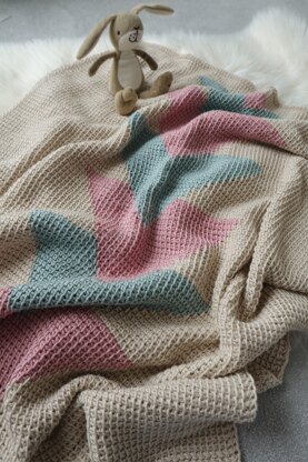The Abimal Blanket is worked flat, RS facing from right to left, with colours creating overlaying triangular pattern in the centre of the blanket.