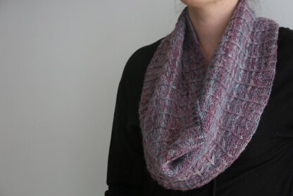 A pretty cowl inspired by the colours of the Scottish hillside. This pattern uses an absolutely gorgeous yarn – Malabrigo Rastita. The delicate “watercolour” variegated colourway reflects the natural beauty of the Highlands with jewel tone greens, subtle greys and heathery purples and pinks. Variegated yarns look lovely in the skein, but it can be a challenge to find the right design for them. This cowl has slipped stitches, and gathered strands of yarn running across it to really showcase a special multicoloured yarn.