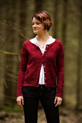 Simple, classic cardigan is something that you always have to have. With no body shaping this cardigan flatters most body types and is easy to wear with all kinds of outfits. Sporty purl lines on sleeves and on sides of the body piece will give a little twist for this cardigan. Knitted from top down, starting from back piece, continuing to front yoke pieces and joined together to work body part, you can adjust the length of the cardigan easily. Sleeve stitches are picked up from armholes.