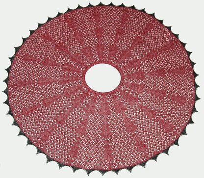 When the body portion is completed, the poncho is finished by knitting a lace edging sideways around the outside of the circular body portion. The edge portion is worked on both sides of the fabric (RS and WS).