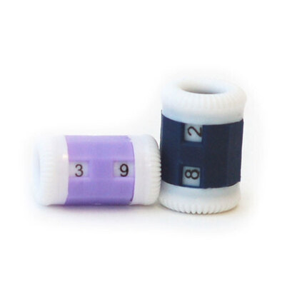 Keep track of even the fiddliest knitting patterns with this pack of two Addi row-counters. Just slot a counter onto your needle, and increase the dial at the end of each row. The smaller row counter fits knitting needles from 2mm-4.5mm (US sizes 0-7) and the larger one 5-7mm (US size 8-10.5)