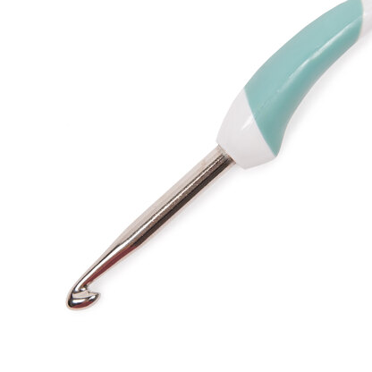 You’ll be able to crochet for hours with Addi’s Swing MAXI crochet hook. The hook has a fantastically designed ergonomic handle made of easy-grip plastic, while the metal hook itself has a length of approx 1.5 inches — great news for those crocheters who prefer a hook with a longer reach. Please note that all Addi crochet hook sizes are slightly different from standard correspondence between a letter size and the millimeter size. Thus, the size B is actually 2.5mm in diameter instead of 2.25mm; size C is actually 3.0mm instead of 2.75mm; size F is actually 4.0mm instead of 3.75mm; size G is actually 4.5mm instead of 4.0mm; size K is actually 7.0mm instead of 6.5mm.