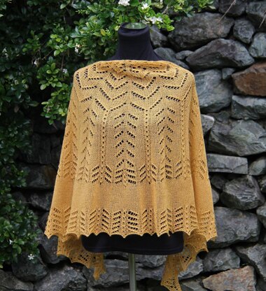 Size: After blocking, approx.: 72.4” wingspan, 23.6” depth (184 cm wingspan, 60 cm depth). The final measurements depend on chosen yarn, needles size, your personal gauge and also the number of times the pattern is repeated.