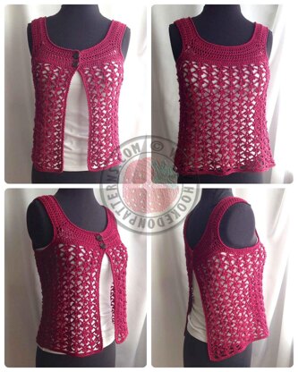 This sweet little over vest top has been designed to be worn either way around, with the opening on the back or front. This pattern will be worked in one piece, starting with the yoke working down.