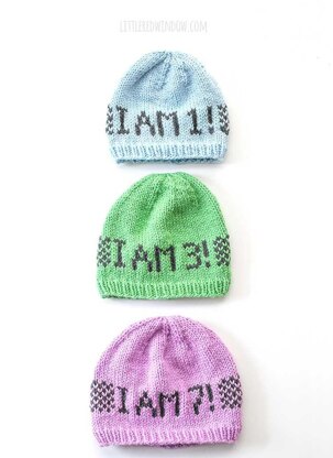 This cute Any Age Birthday Hat knitting pattern can be easily customized for...any age! Instructions, charts and sizing included from baby to adult! This pattern includes a simple single stitch checkerboard section and a text section with the words "I AM X!" that you can easily customize for any age. This pattern does include charts for both single and double digit ages (if you're knitting for someone 100+ and you'd like this pattern for three digits, send me an email!) Knitting colorwork text is fun and super rewarding as you see the words appear as you knit. You'll love knitting this one!