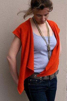 For those cool evenings this soft, airy, elegant draped cardigan will keep you warm and stylish. Knit from the top down, this cardigan has long front panels which are designed to either hang down forming a cascading front or be pinned across the front like a shawl. To find the correct size to fit, measure across your high bust line (approximately under your armpits) and use this as your size guide. Due to the stretchy nature of the fabric you should use this actual measurement; if you are between sizes knit the smaller size. Options are given in the pattern for both short sleeves and 3/4 length sleeves. Details are given in pattern on working short rows and an elastic bind off.