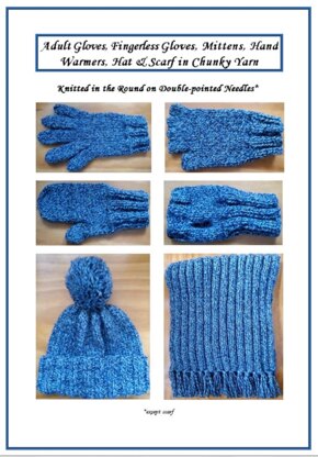 Adult Gloves, Fingerless Gloves, Mittens, Hand Warmers, Hat & Scarf in Chunky Yarn