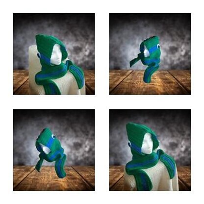Teen/Adult size Crochet pattern for an attached hood scarf Make all your 4 favourite characters. Eyes on both sides of the head means your able to see all around you. Great gift for those boys who still relish in their favorite hero's from the past. Makes up very quick and easy.