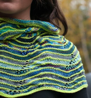 Adventageous Cowl was designed for the fantastic range and variety of colours of Koigu KPPPM and KPM, with a main solid yarn of Koigu KPM. Most any fingering weight (aka 4-ply or sock yarn) in a mix of speckles and semi-solids will work.