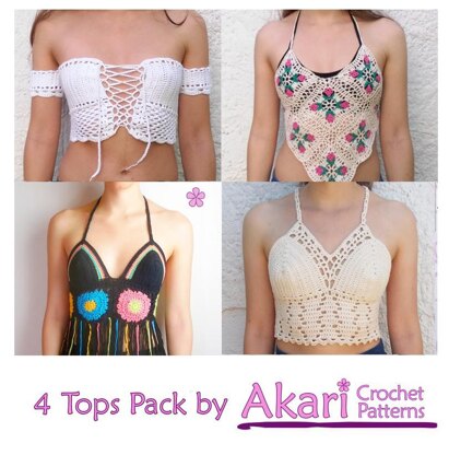 With this pack you get 4 original and beautiful lacy crochet crop tops patterns and only pay for 3 of them!
