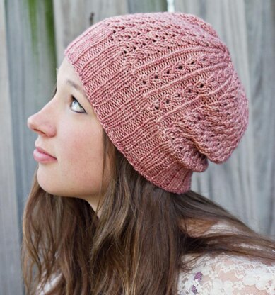 A feminine, textured hat with a soft, squishy fabric that is fun to knit.