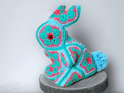 Then the joining of the 18 flowers is described in detail and with pictures. The bunny is very good for beginners in the technique of African Flowers suitable.