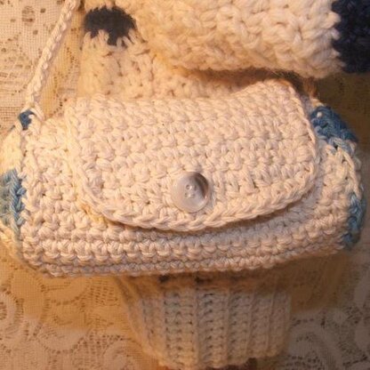 Supplies: 1 ounce Sugar and Cream cotton yarn, 10 yards Sugar and Cream cotton yarn in a contrasting color, Size F crochet hook, yarn needle, 5/8 inch button, needle and thread.