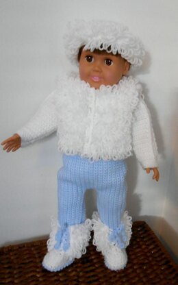 Pattern includes overalls with long sleeves, hat, vest and boots.