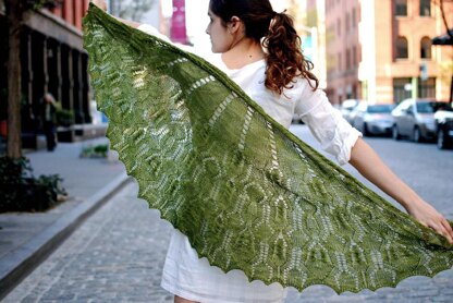 Aglaea, named for the greek goddess of beauty, is a semi-circular shawl with a rich pattern of cables and lace. It starts with a garter tab and is worked from the center top down.