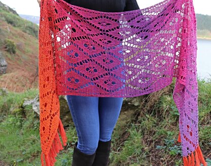 The wrap looks stunning draped around the shoulders, or worn as a light scarf.
