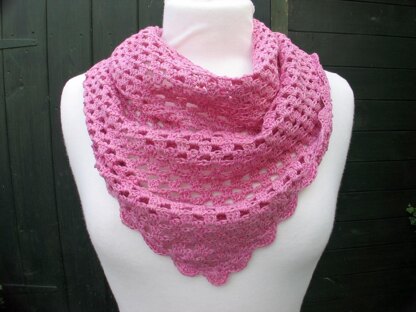This triangular mini shawl can be worn as a traditional shawl with the point at the back, or as a scarf with the point in the front. It is worked from the tip upwards, so you can make it as big as you like.