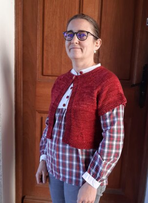 Aiguebrun is a short cardigan, or shrug, to be worn on a shirt ou a tee-shirt, to bring warmth and a bit of fancy.