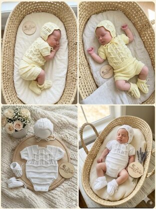 The Bonnet: A traditional T-shaped or back-seam bonnet that showcases the lace design and frames a baby’s