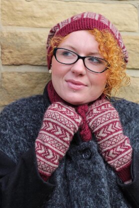 YARN Baa Ram Ewe Titus (50% Wensleydale, 20% Bluefaced Leicester, 30% UK alpaca), 320m [350yds] per 100g Colour A: Bantam, 1 x 100g skein Colour B: Yorkstone, 1 x 100g skein One skein of each colour will be enough to make both the hat and mittens.