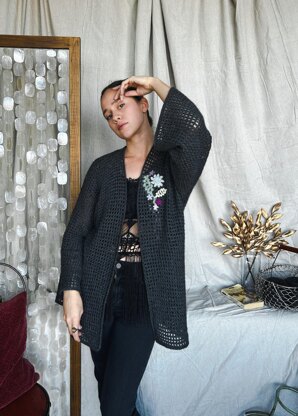 The Aki Kimono is a stylish yet simple and easy to make design. This pattern is written in English and used US terminology. It is suitable for beginner crocheter. We can’t wait to see your creation. We used in total approximately of 700 yards DK size yarn. You can choose any type, colour combination and size of yarn. Happy hooking!