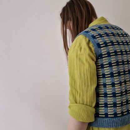 Inspired by Anni Albers' weaving, the Albers slipover blends three colours into a striking stripe pattern. It's a modern twist on traditional colourwork, combining knits and purls for a squishy texture. Ideal for knitters looking for something unique yet wearable, this slipover adds an artistic touch to any outfit.