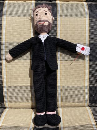 Alex doll will be approximately 35-40cm tall when finished. It will all depend on your tension and the thickness of the yarn. I am using yarn under for crocheting my amigurumi as this reduces the holes between the stitches and gives more even rows and gives some stiffness to some parts (like the envelope and clipboard). If you are a loose crocheter, you may consider going down a hook size.